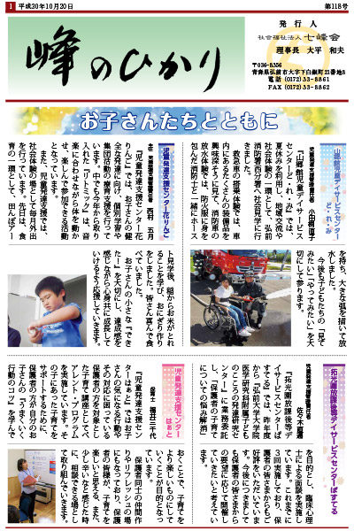 七峰会の各グループで行っているイベントや、福祉に関する情報などをお知らせしている広報誌「峰のひかり」の最新号(2018年10月20日発行 第118号)を掲載致しました。 ぜひご覧下さい。 「峰のひか ... 続きを読む